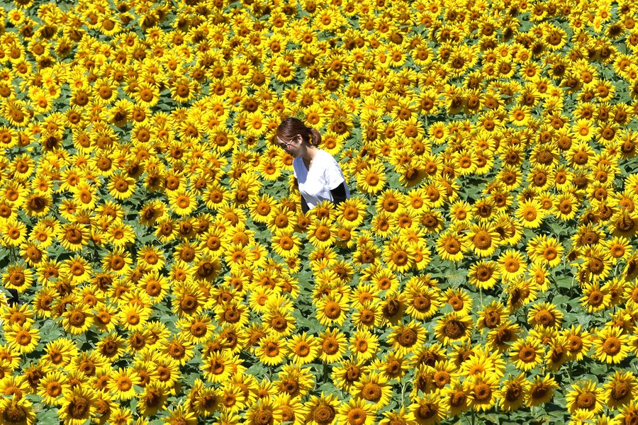 Read moreA woman walks through in a full bloom sunflower field at the Serakogen Nojo flower farm on August 10, 2016, in Sera, Japan. More than a million sunflowers are in full bloom on this farm during their annual Himawari Matsuri or Serakogen Nojo Sunflower Festival held until August 20, 2016. #
