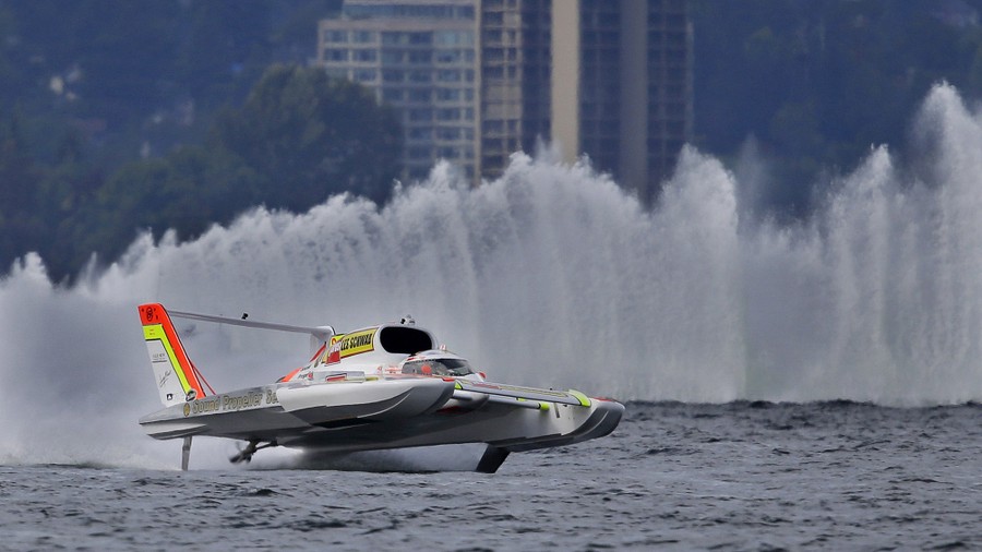 Read moreAndrew Tate, piloting the Sound Propeller/Les Schwab boat, gets some air as he runs to a first-place finish in the H1 Unlimited Albert Lee Appliance Cup during Seafair weekend in Seattle on August 7, 2016. #