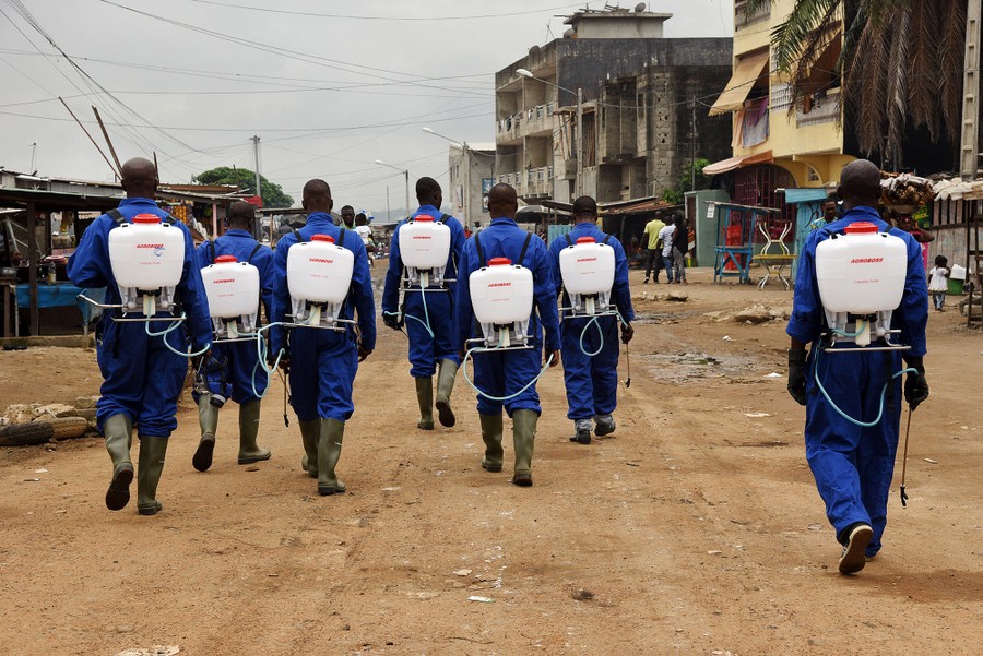 Read moreA team equipped with anti-mosquito spray packs walks through the Koumassi district of Abidjan on August 11, 2016 during an operation aimed at preventing the spread of the zika virus. #