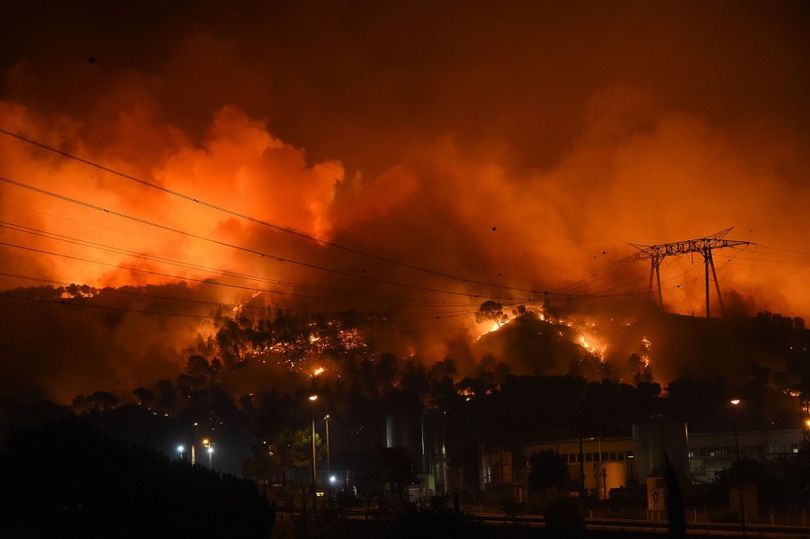 Read moreA fire blazes at Les Pennes-Mirabeau, near Marseille, France on August 11, 2016. France mobilized 1,500 firefighters on August 10, 2016, to deal with wildfires in the countryside north of Marseille that have gutted buildings and forced more than 1,000 people to flee their homes. #