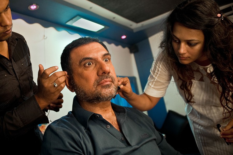 Read moreMakeup artists prepare Boman Irani in a trailer at Mehboob Studio in Bandra. “In the last 10 years I have done 54 films," he said, "for me acting is all about craft and likability.” #