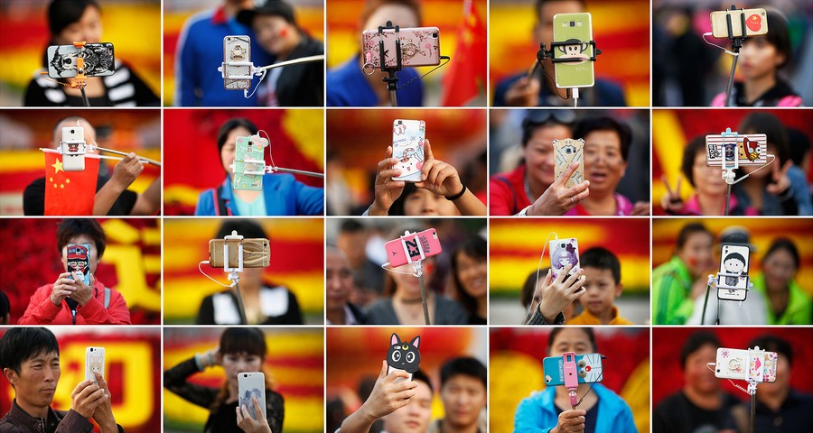 Read moreA combination of pictures shows people taking selfies in Tiananmen Square as they celebrate National Day marking the 67th anniversary of the founding of the People's Republic of China, in Beijing, on October 1, 2016. #