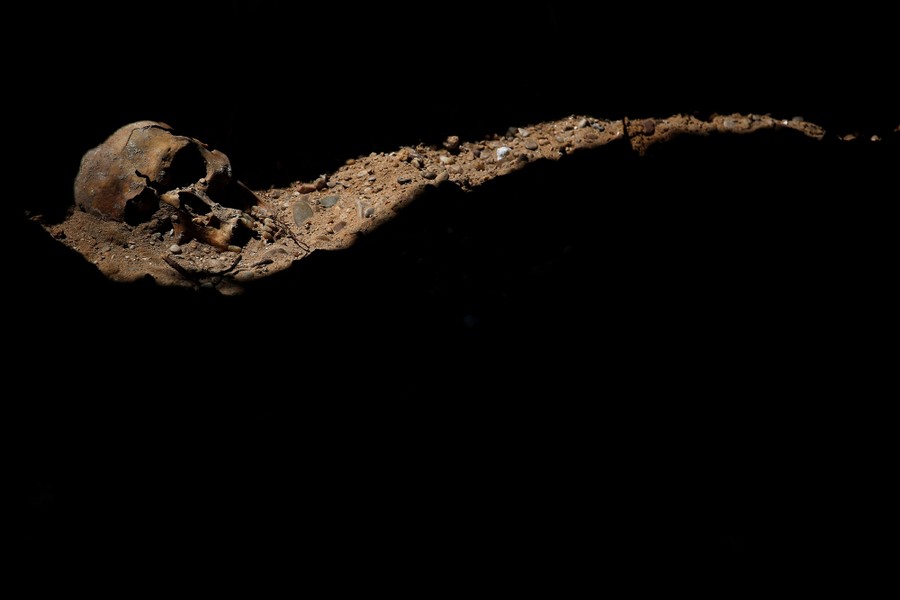 Read moreA human skull is seen inside one of three mass graves that contain the remains of around 200 bodies believed to have been killed by Spain's late dictator Francisco Franco's forces during the civil war, at El Carmen's cemetery in Valladolid, Spain. #