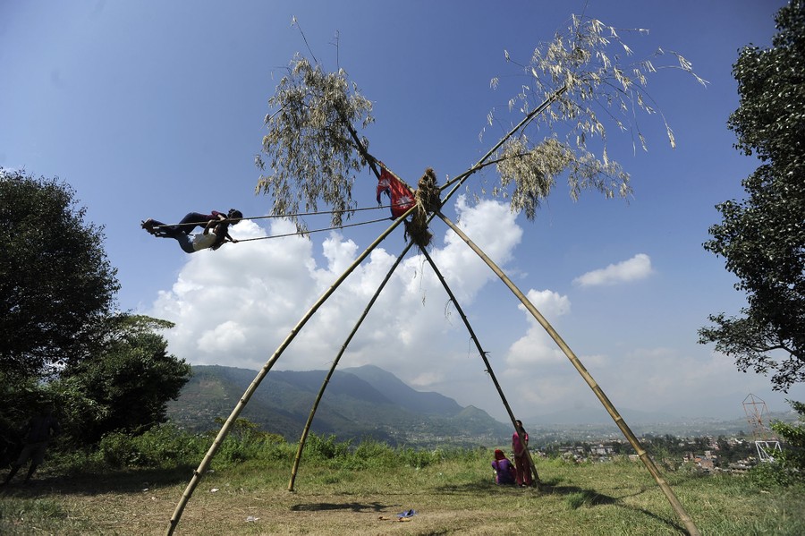 Read moreNepalese youth play on a swing, popularly known as the "Dashain Ping," on the sixth day of the Hindu festival of Dashain in Lalitpur, on the outskirts of Kathmandu on October 7, 2016. #