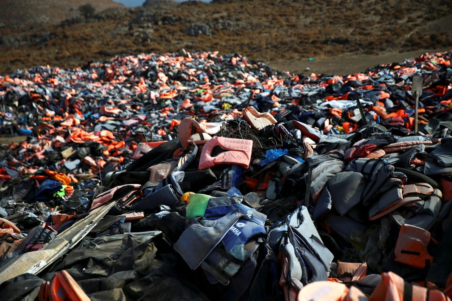 Read moreThousands of lifejackets left by migrants and refugees are piled up at a garbage dump site near the town of Mithymna (also known as Molyvos) on the island of Lesbos, Greece, on October 5, 2016. #