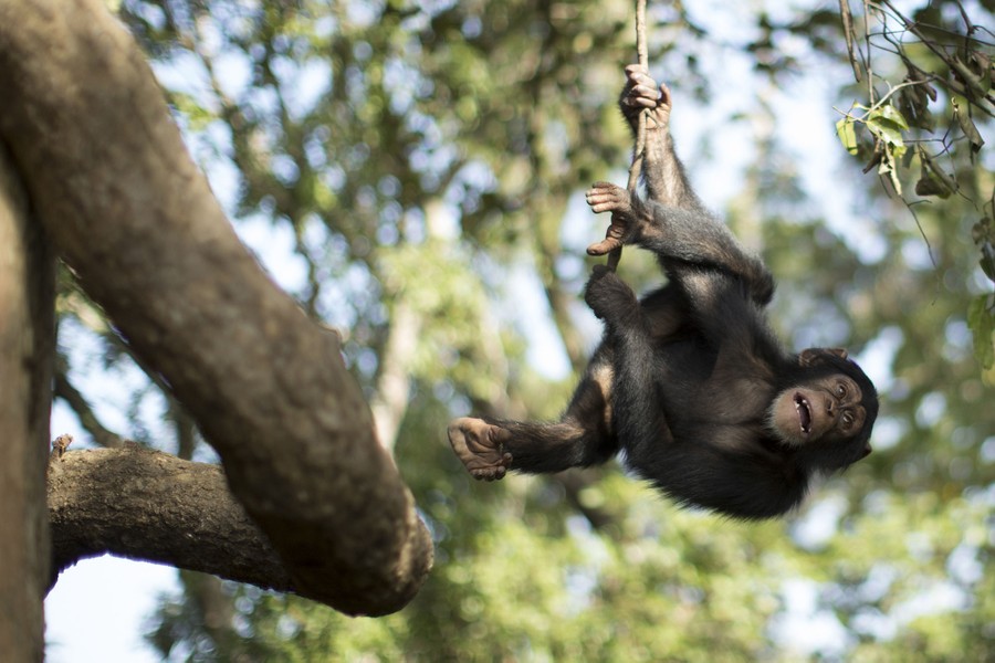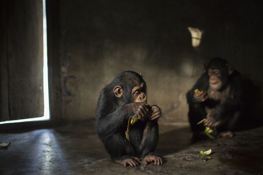 Getty Images photographer Dan Kitwood spent time last year visiting the Chimpanzee Conservation Center (CCC) in the Haut Niger National Park in Guinea, West Africa. Kitwood describes the 6,000-square-kilometer facility as a sanctuary and rehabilitation center for rescued orphaned chimpanzees. The chimpanzees receive care and attention from keepers during a rehabilitation period that may take as long as 10 years, with the ultimate goal being self-sufficiency and a release back into the wild. At the time of Kitwood’s visit, the CCC was looking after 50 Western Chimpanzees.