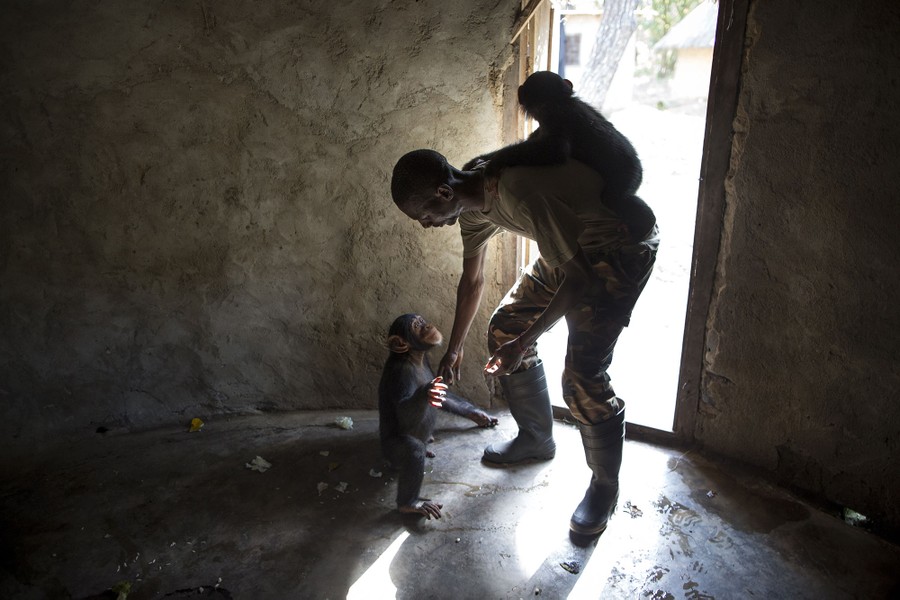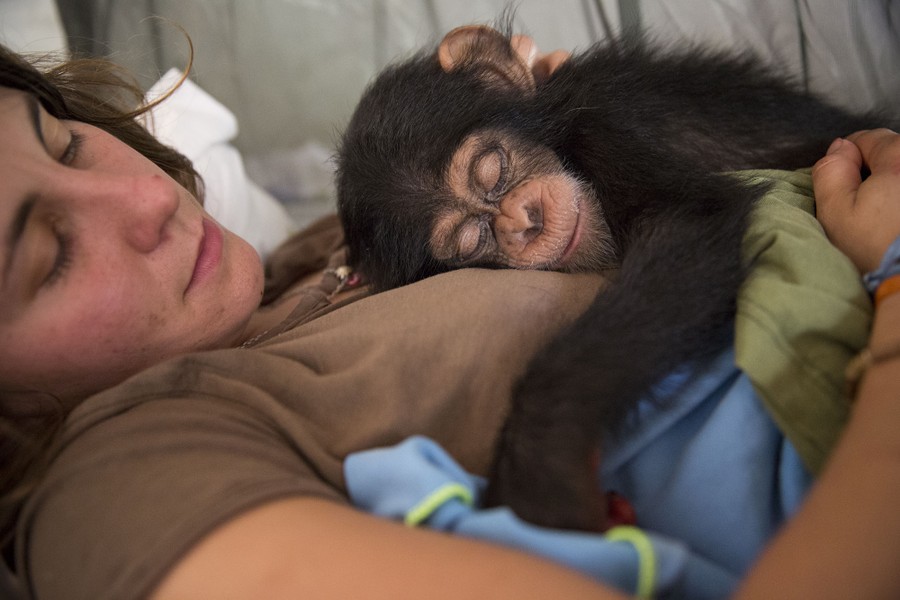 Read moreFrench volunteer Audrey Lenormand, 27, holds ten-month-old Soumba at the Chimpanzee Conservation Center on November 27, 2015, in Somoria, Guinea. Soumba was recently rescued from traffickers by authorities and is the 50th baby Chimpanzee to arrive at the CCC. For the first three months he is cared for 24 hours a day by a volunteer quarantined away from other chimpanzees and staff. #