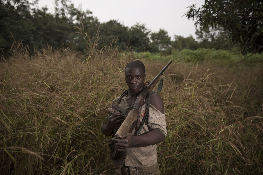 Read moreLocal hunter Sekouba, 26, poses for a portrait in the Haut Niger National Park downriver from the Chimpanzee Conservation Center on November 23, 2015. Illegal hunting for bushmeat remains a constant threat to Chimpanzee populations in the park. #
