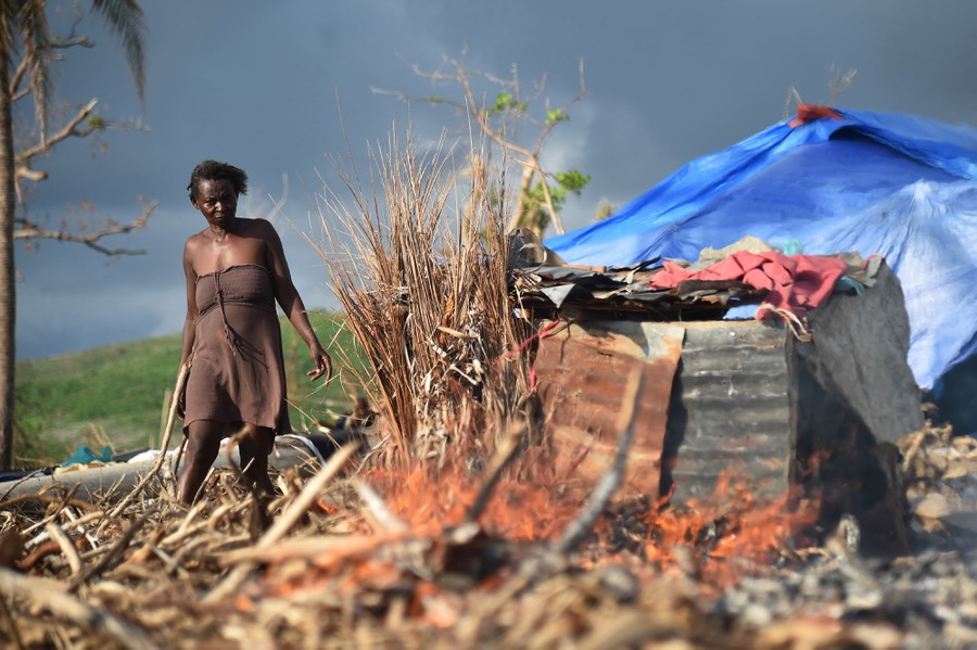 Read moreMarie walks next to her house damaged by Hurricane Matthew, in the village of Labeyi, in the commune of Chardonnieres, in southwestern Haiti, on November 3, 2016, while she burns debris left by the hurricane. At least 546 people were killed when Hurricane Matthew roared ashore one month ago, on October 4, packing winds of 145 miles (230 kilometers) per hour. #