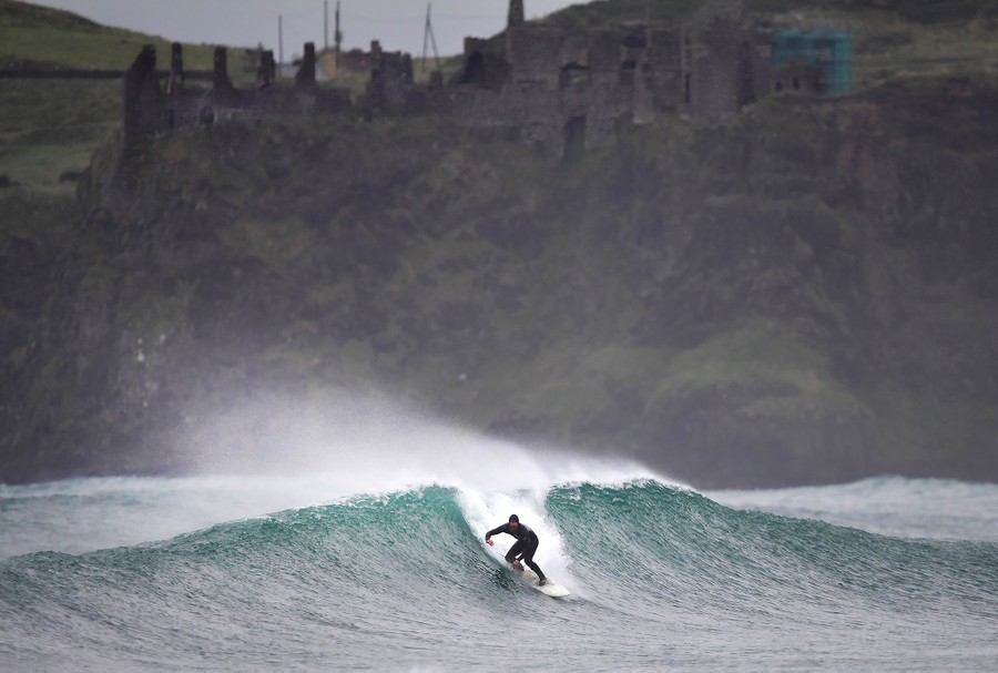 Read moreProfessional surfer Al Mennie catches a wave under the historic Dunluce Castle ruins on October 31, 2016 in Portrush, Northern Ireland. Built in the 1500's by the McQuillan clan the medieval castle changed hands many times as a result of fighting between the McQuillan, MacDonnell and O'Neill clans in north Antrim. The dramatic history of Dunluce is matched by tales of a banshee and the castle kitchens which fell into the sea after a storm in 1639. #
