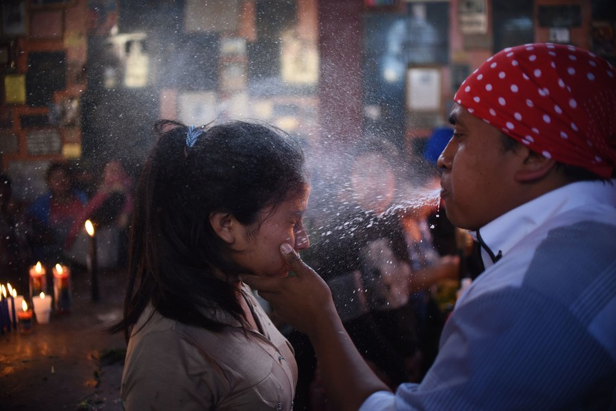Read moreA woman is "cleansed" at the Temple of San Simon in the municipality of San Andres Iztapa in Chimaltenango, some 40 km west of Guatemala City, on October 28, 2016, during a pagan festival to honor the saint. Thousands of devotees bring cigarettes and spirits offerings to the saint, who is believed to be the protector of the homeless, prostitutes, alcoholics and drug-traffickers. #