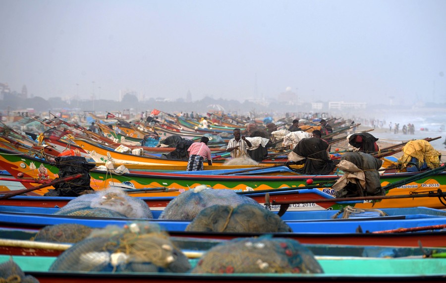 Read moreIndian fisherman arrange their nets as fishing ferries line up on the ocassion of International Fishermans day, on the coast of the Bay of Bengal in Chennai on November 21, 2016. #