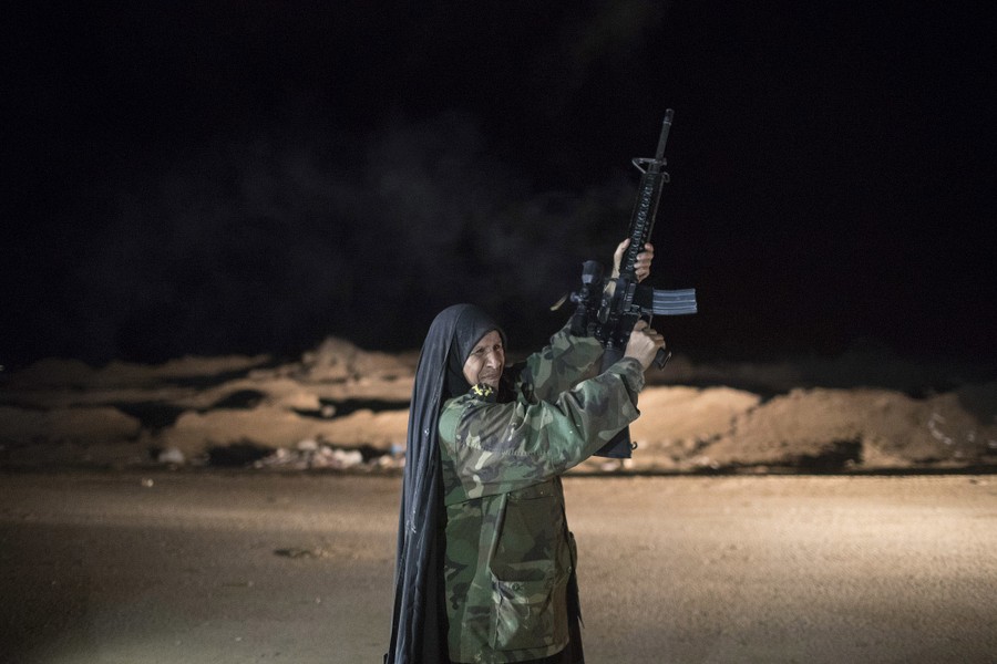 Read moreA woman fires to the air at a Popular Mobilization Units base south of Mosul, Iraq, on November 20, 2016. Iraqi troops on Sunday fortified their positions in Mosul neighborhoods retaken from ISIS as their advance toward the city center was slowed by sniper fire and suicide bombings, as well as concern over the safety of civilians. #