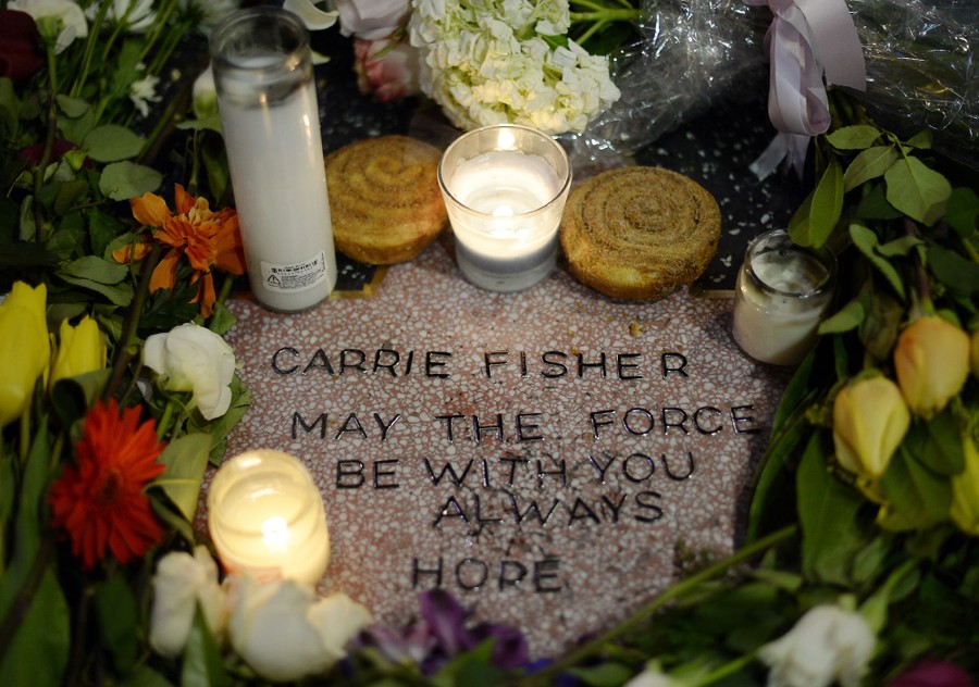 Read moreCandles and flowers are placed on actress Carrie Fisher's makeshift star on The Hollywood Walk of Fame on December, 29 2016, in Hollywood, California. Fisher died on Tuesday after suffering a heart attack. She was 60 years old. #