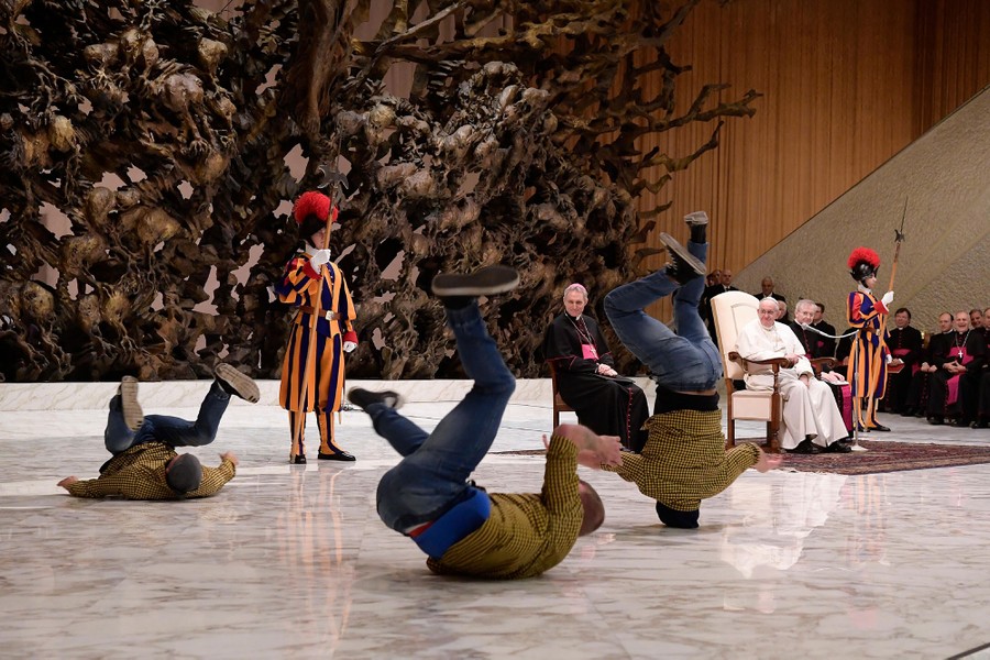 Read morePope Francis watches a performance by members of the Golden Circus in the Paul VI Hall at the Vatican at the end of his weekly general audience on December 28, 2016. #