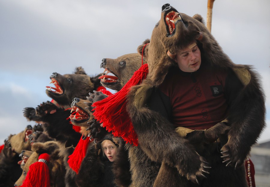 Read moreA child wearing a bear fur costume dances along with adults during the annual bear ritual gathering in Comanesti, Romania, on December 30, 2016. In pre-Christian rural traditions, dancers wearing colored costumes or animal furs, toured from house to house in villages singing and dancing to ward off evil, in the present the tradition has moved to Romania's cities too, where dancers travel to perform the ritual for money. #