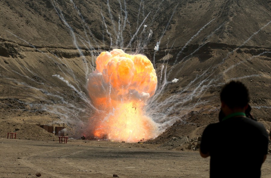 Read moreJournalists and police observe the destruction of about one ton of fireworks confiscated to illegal vendors before the Christmas and New Year holidays, in Lima, Peru, on December 23, 2016. #