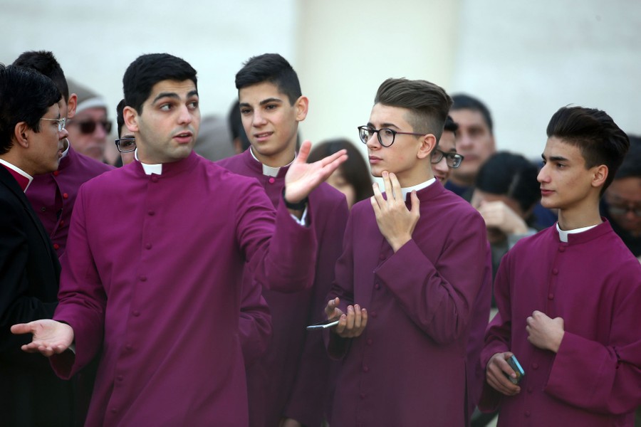 Read moreYoung priests stand in St. Peter's Square as Pope Francis Delivers his Christmas Urbi Et Orbi Blessing from St. Peter's Basilica on December 25, 2016 in the Vatican City. #