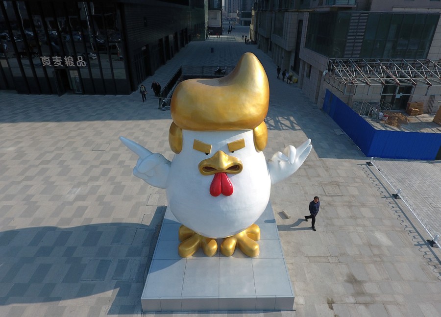 Read moreA sculpture of a rooster that local media say bears resemblance to U.S. President-elect Donald Trump is seen outside a shopping mall in Taiyuan, Shanxi province, China, on December 30, 2016. #