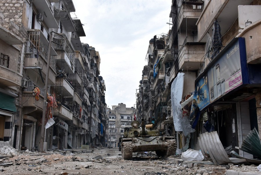 Read moreA Syrian regime tank sits in front of heavily damaged and abandoned buildings in the former rebel-held Sukkari district in the northern city of Aleppo on December 23, 2016 after Syrian government forces retook control of the whole embattled city. Syrian troops cemented their hold on Aleppo after retaking full control of the city, as residents anxious to return to their homes moved through its ruined streets. #