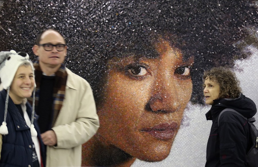 Read morePeople stand next to a portrait of artist Sienna Shields by her husband, artist Chuck Close at the 86th Street station on the Second Avenue subway line on January 3, 2017 in New York City. #