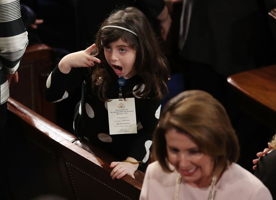 Read moreSix year old Bella Pelosi Kaufman stands with her grandmother, House Minority Leader Nancy Pelosi, during the opening session of the 115th Congress where members were allowed to bring children into the House Chamber, on January 3, 2017, in Washington, DC. #