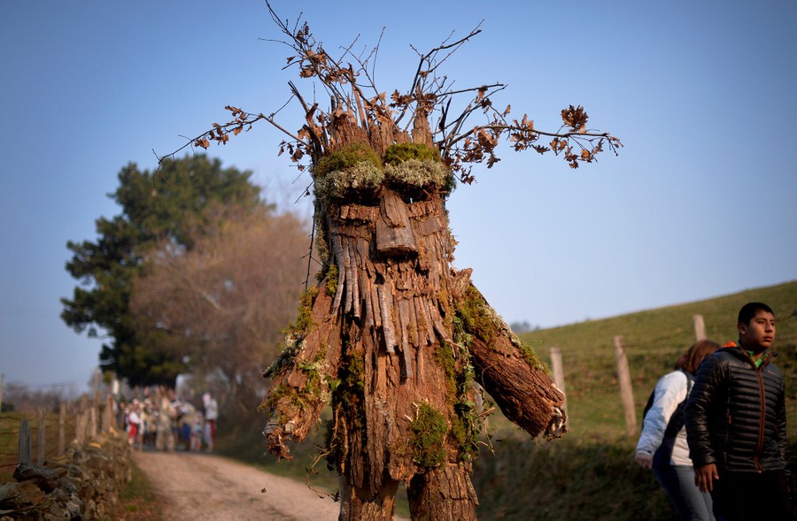 Read moreA man dressed as a tree takes part in 'La Vijanera', a winter masquerade at the beginning of carnival season in Europe, in Silio, northern Spain, on January 8, 2017. #