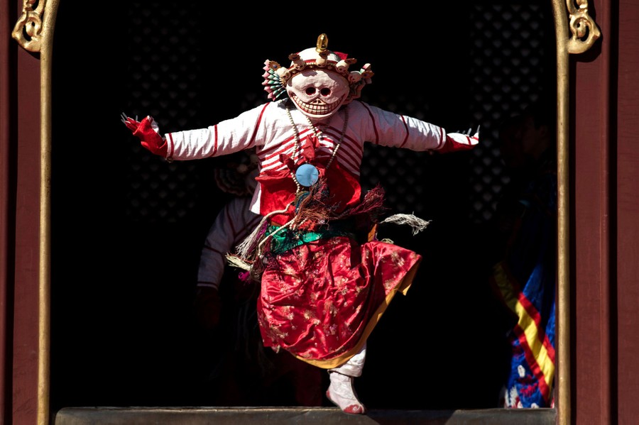 Read moreThis picture taken on February 24, 2017 shows a Tibetan monk dressed as a demon performing a dance for the Beating Ghost festival during a rehearsal at the Yonghe Temple, also known as the Lama Temple, in Beijing. The Beating Ghost festival, or Da Gui festival in Chinese, is an important ritual in Tibetan Buddhism and is believed to expel evil spirits and shake off troubles. #