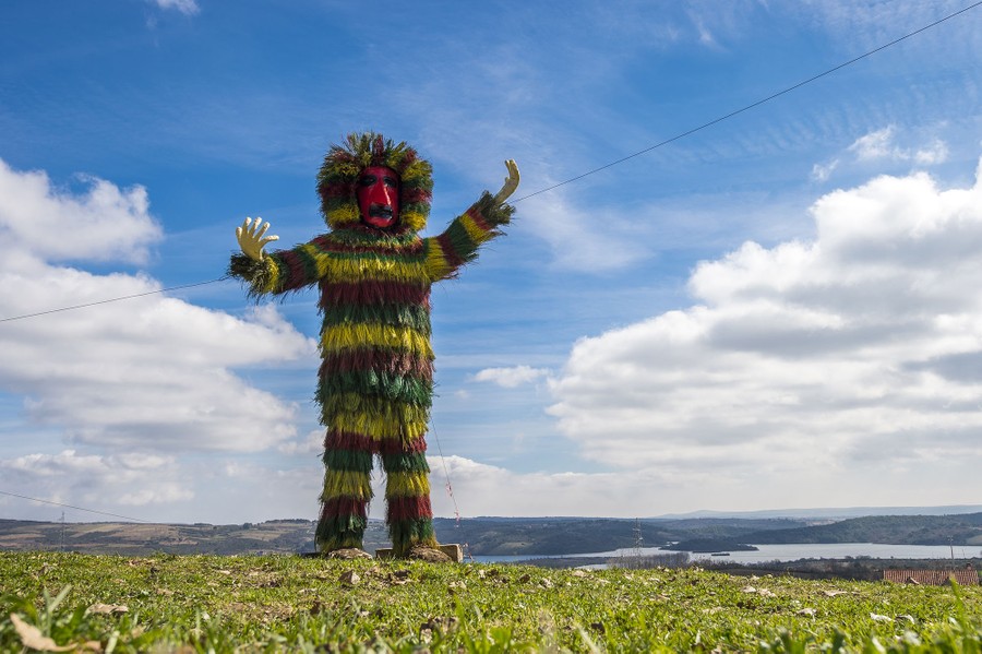 Read moreA big reveler from the Portuguese village of Podence, dressed in a traditional costume during annual Carnival festivities on February 26, 2017 in Macedo de Cavaleiros, Portugal. Revelers, known as 'Caretos' wear brass or wooden masks and dress up in costumes made of dyed wool and with cowbells in their belts. They shout and chase people in the streets to scare them, with single women being their main target. Once they corner someone, they bang their cowbells against the person. #