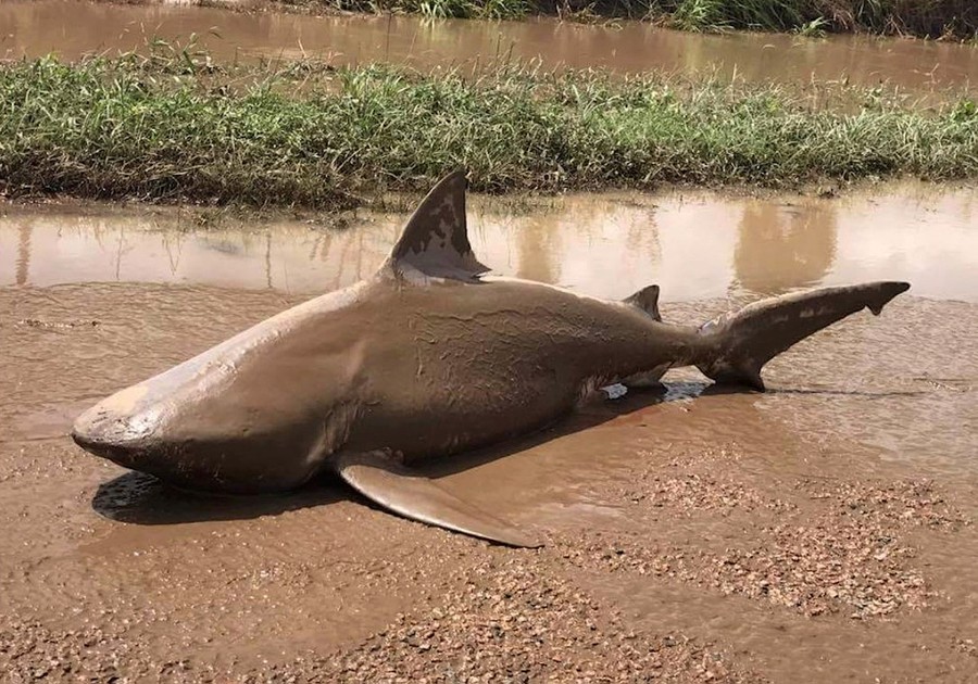 Read moreA bull shark that was found in a puddle near the town of Ayr, located south of Townsville, following flooding in the area from heavy rains associated with Cyclone Debbie in Australia. Queensland. Photo supplied to Reuters on March 30, 2017. #