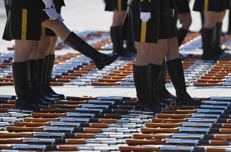 Read moreA member of a military honor guard adjusts her uniform before a welcome ceremony for Micronesia President Peter Christian outside the Great Hall of the People in Beijing on March 27, 2017. #