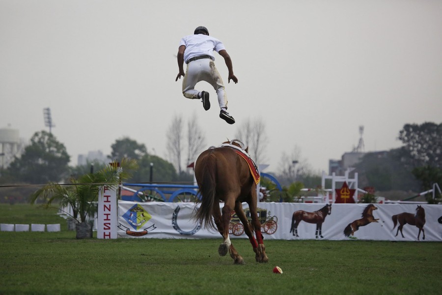 Read moreA Nepalese army soldier demonstrates his horse riding skills during the Ghode Jatra festival, an annual horse festival in Kathmandu, Nepal, on March 27, 2017. According to legend, the festival is held to celebrate the victory over a demon named Tundi and people believe that the clamor of horses' hooves during the festival keeps the demon's spirit away. #