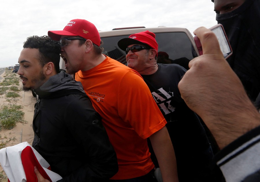 Read morePro-Trump rally participants yell at an Anti-Trump protester as the two sides clash during the Southern California Make America Great Again march in support of President Trump, the military, and first responders at Bolsa Chica State Beach in Huntington Beach, California, on March 25, 2017. #