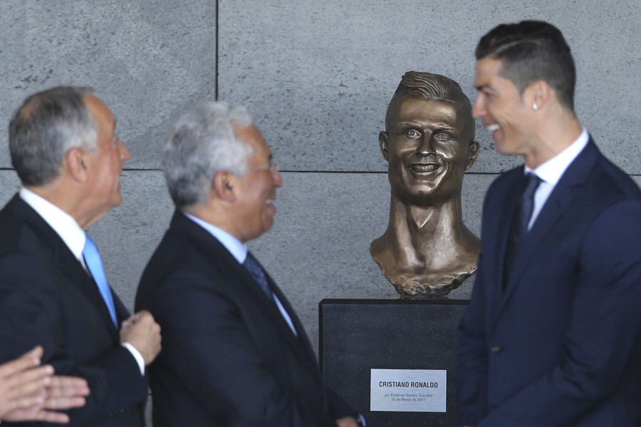 Read moreReal Madrid's Cristiano Ronaldo is honored with a bust in his likeness at the Madeira international airport outside Funchal, the capital of Madeira island, Portugal, on March 29, 2017. Madeira International Airport was renamed after local soccer star Ronaldo during a ceremony at the airport outside his Funchal hometown. #