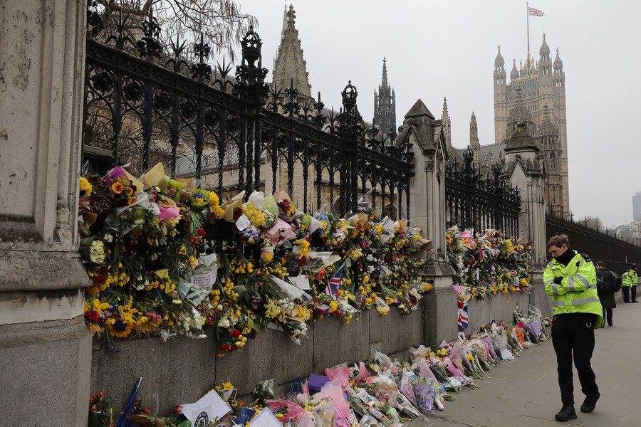 Read moreFlowers are left outside the Houses of Parliament in memory of those who died in last weeks Westminster terror attack on March 27, 2017 in London, England. Five people including the assailant were killed and around 40 people injured following last week's attack outside the Houses of Parliament in Westminster. #