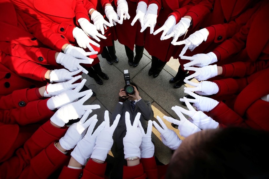 Read moreAttendants serving delegates from a hotel pose for a photo at Tiananmen Square as delegates attend a meeting during the annual session of China's parliament, the National People's Congress (NPC), in Beijing, China on March 4, 2017. #