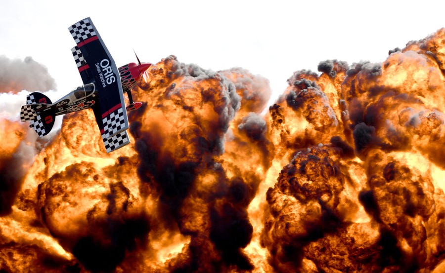 Read moreA member of the Tinstix of Dynamite aerobatics team flies in front of a wall of fire during the Australian International Airshow in Melbourne on March 5, 2017. The annual event sees 180,000 visitors over the 3-day public event held at the Avalon Airfield. #