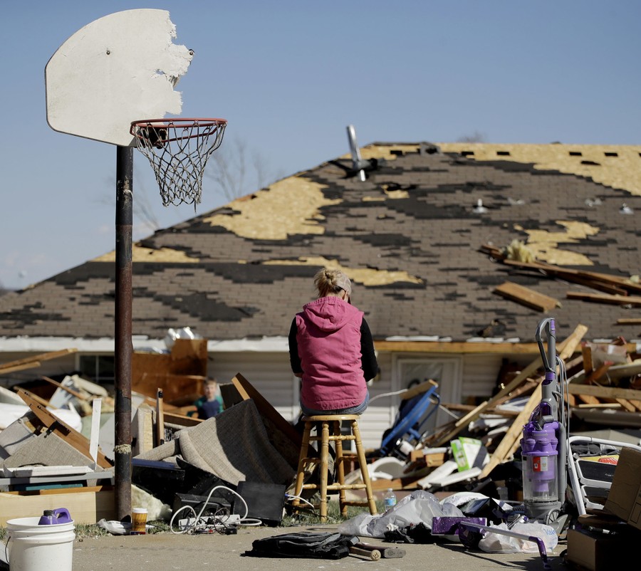 Read moreCori Brown takes a break from helping salvage items from a friend's tornado-damaged home on March 7, 2017, after a severe storm passed through Oak Grove, Missouri, on Monday night. #