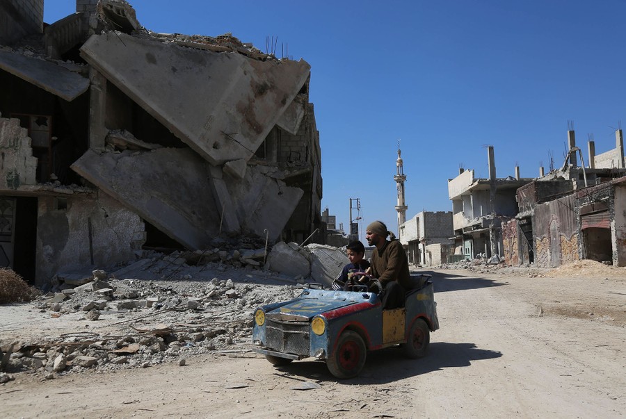 Read moreA Syrian man drives a home-made toy car in the rebel-held town of Beit Naim, in the eastern Ghouta region on the outskirts of the capital Damascus, on March 7, 2017. #