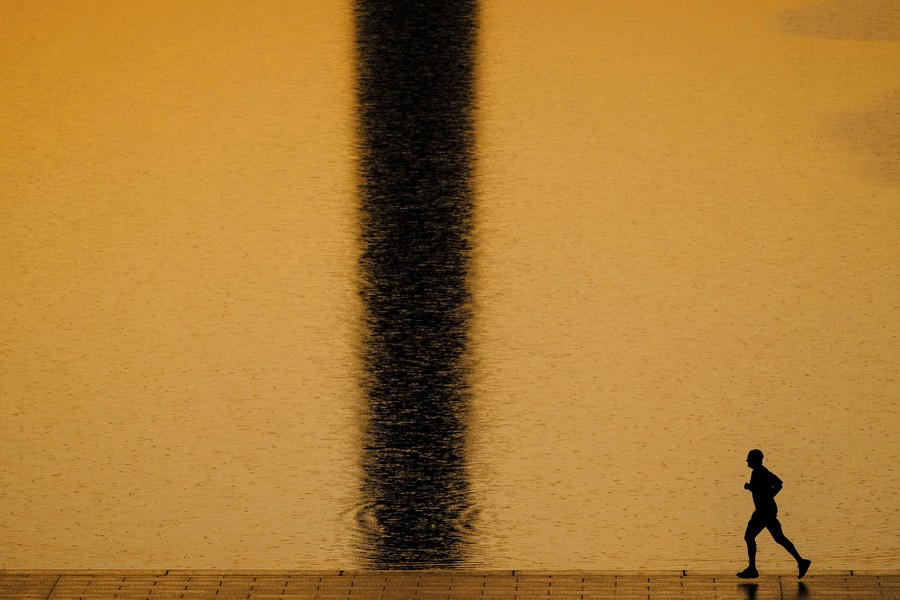 Read moreAn early morning runner passes the shadow of the Washington Monument in the reflecting pool on the National Mall during a light drizzle on April 17, 2017, in Washington, DC. #