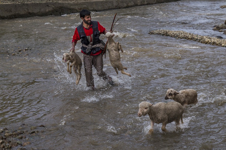 Read moreA Kashmiri shepherd carries his lambs after rescuing them from being washed away while crossing a stream with his flock, in Harshan village 35 Kilometers (22 miles) north of Srinagar, Indian controlled Kashmir, on April 18, 2017. #