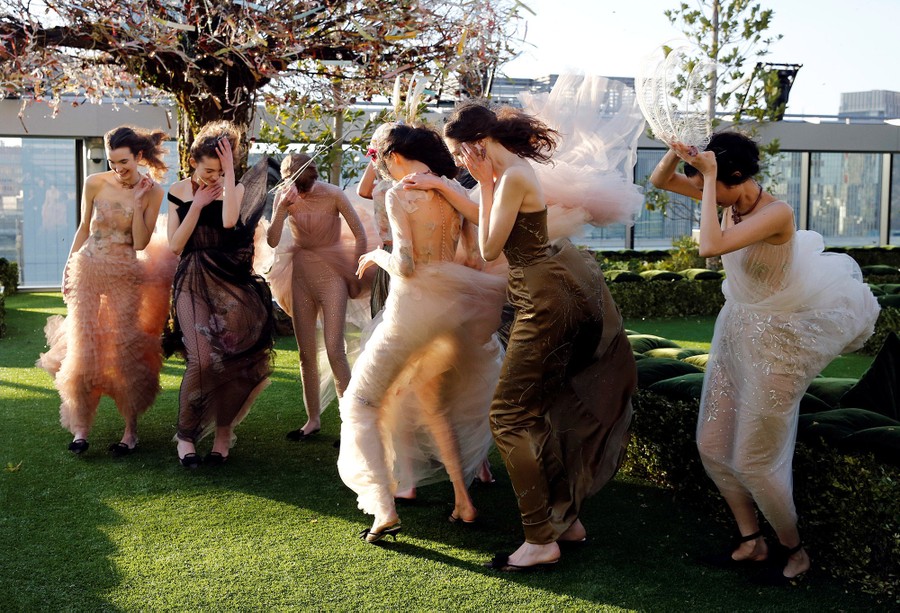 Read moreModels struggle against strong wind before the rehearsal of Christian Dior's Haute Couture Spring-Summer 2017 live show to celebrate Dior's new flagship store at the rooftop of Ginza Six mall in Tokyo, Japan, on April 19, 2017. #