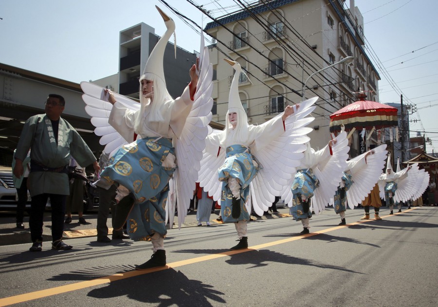 Read moreHeron-hooded dancers parade down the street toward Asakusa Shrine in the compound of Sensoji Temple in Tokyo prior to the annual Sanja Festival, one of the three major festivals in Tokyo, on May 19, 2017. #