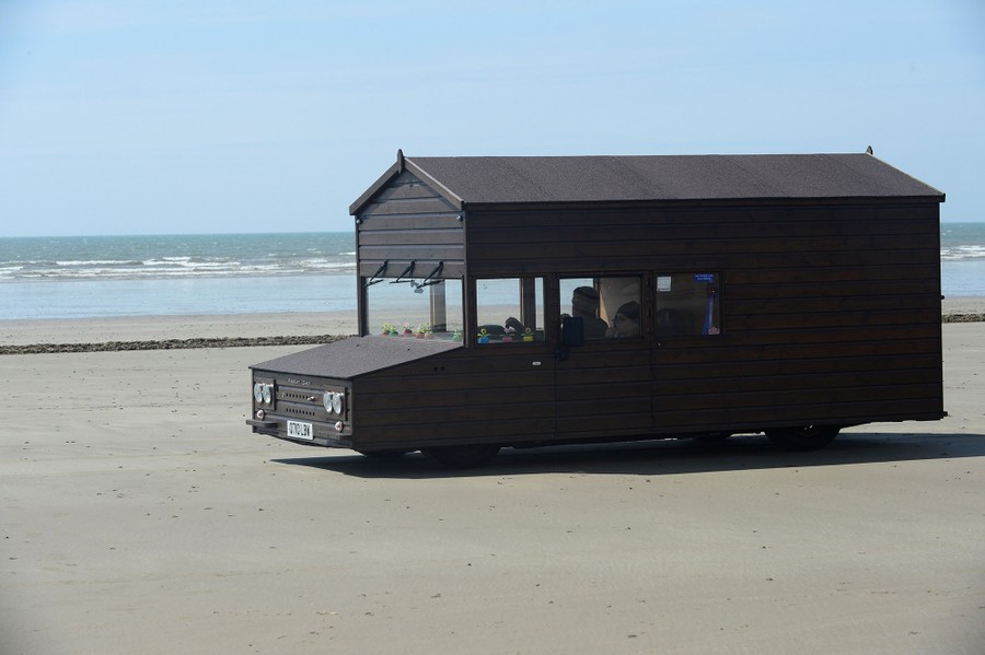 Read moreKevin Nicks from Oxfordshire, drives the world's fastest shed during the Straightliners annual, UK, European and World land speed event at Pendine Sands, Wales, on May 13, 2017. #