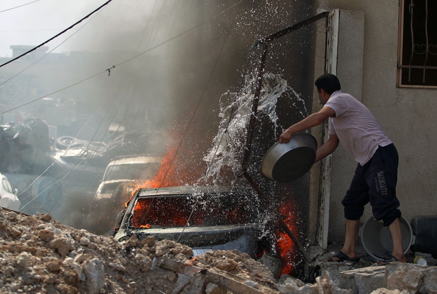 Read moreAn Iraqi man tries to put out a car on fire as Iraqi Counter-Terrorism Services (CTS) advance towards Mosul's western Rifai neighborhood during their ongoing offensive against ISIS on May 16, 2017. #