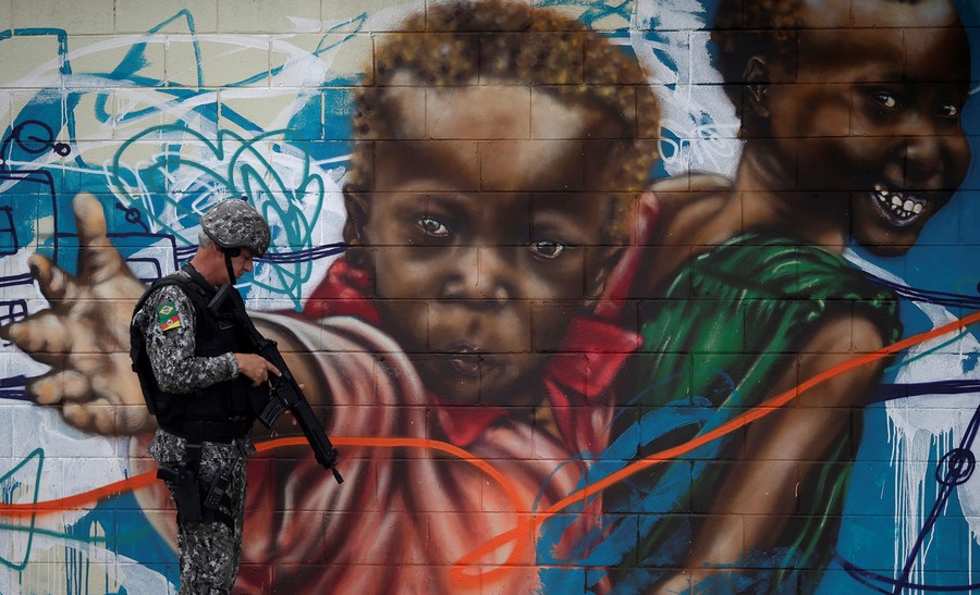 Read moreA Brazilian Public-Safety National Force policeman patrols the streets near the Chapadao slums complex during a security operation on an effort to crack down on crime in Rio de Janeiro, Brazil, on May 16, 2017. #