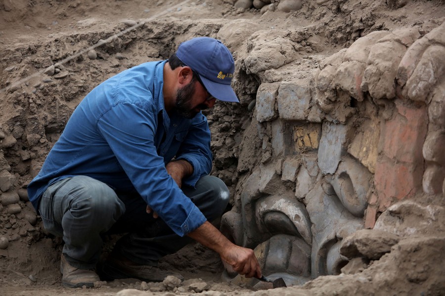 Read moreArchaeologist Hector Walde works at an archaeological site, where 3,500-year-old friezes were recently discovered, according to a press release by Walde, at Huaca Garagay in Lima, Peru, May 24, 2017. #