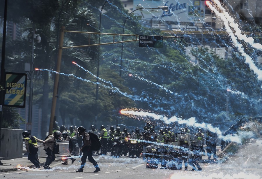 Read moreRiot police clash with opposition demonstrators in Caracas on May 24, 2017. Venezuela's President Nicolas Maduro formally launched moves to rewrite the constitution on Tuesday, defying opponents who accuse him of clinging to power in a political crisis that has prompted deadly unrest. #