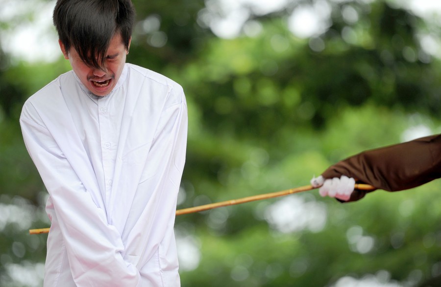 Read moreOne of two Indonesian men is publicly caned for having sex, a first for the Muslim-majority country where there are concerns over mounting hostility toward the small gay community, in Banda Aceh, on May 23, 2017. The pair, aged 20 and 23, were found guilty of having broken sharia rules in conservative Aceh province—the only part of Indonesia that implements Islamic law—and sentenced to 85 strokes of the cane each. #