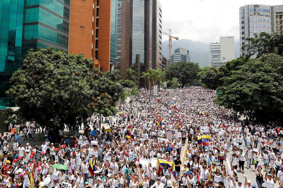 Read moreVenezuelan opposition activists march in Caracas on May 6, 2017. Thousands of women dressed in white marched in Venezuela's capital on Saturday to keep pressure on President Nicolas Maduro, whose authority is being increasingly challenged by protests and deadly unrest. #